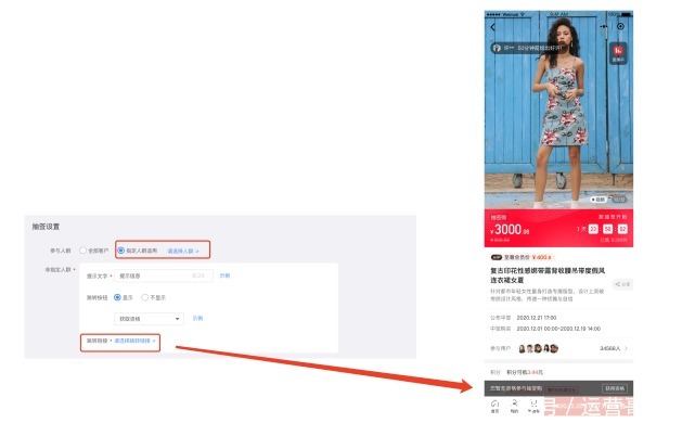 1. 支持设置活动参与人群,给与核心用户抽签特权的同时引导非核心人群转化为核心用户