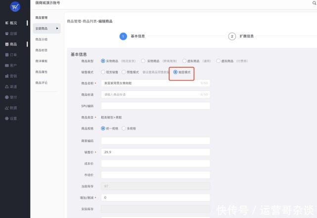【功能入口】:商品-全部商品-编辑-基本信息-抽签模式